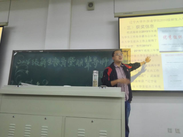 会上,王晗介绍了辽宁大学奖学金、助学金、助学贷款的相关政策,鼓励同学们认真学习,通过自己的努力得到奖学金。除此之外,她还详细介绍了学校对困难学生的帮扶政策。